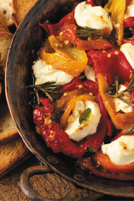 Baked Goat Cheese with Roasted Summer Peppers
