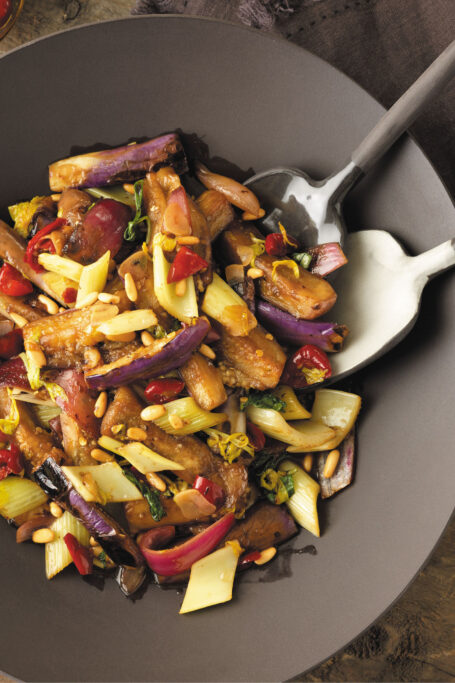 Stir-Fried Eggplant with Celery, Pine Nuts, and Calabrian Chiles
