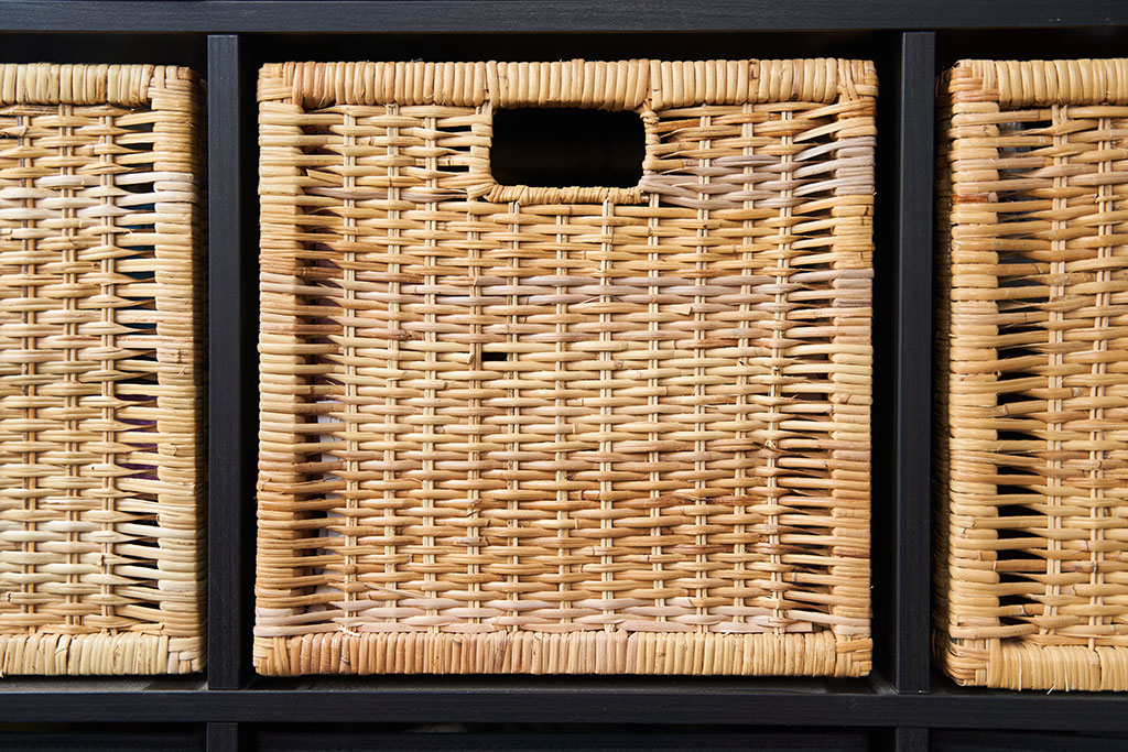 It can be challenging to keep high shelves tidy, especially if they’re hard for you to reach. A solution for utilizing this space more efficiently is to place containers that have see-through fronts or can be clearly labeled, allowing you to corral your belongings by type and quickly find them later. Also consider getting a step stool to give you easy access to the upper shelf; look for one that folds up compactly so you can put it in the back of your closet or underneath your bed.